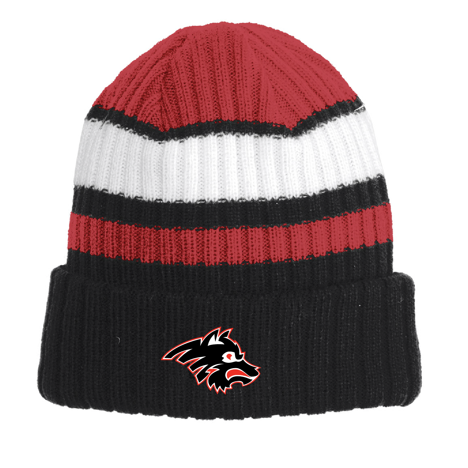 Ribbed and striped, this warm beanie is perfect for team events or everyday wear. A tonal embroidered New Era flag adds subtle character.